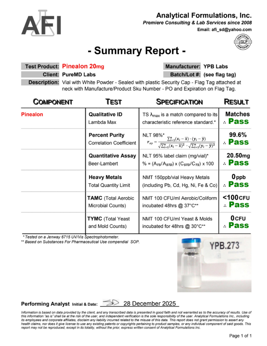 • Stability and solubility profiling of Pinealon under laboratory storage conditions